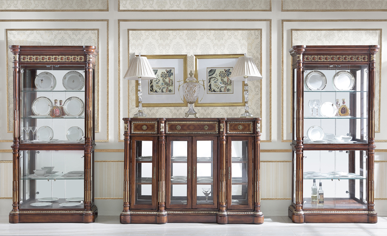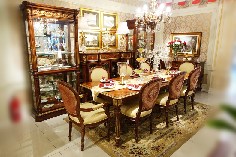 讀懂富豪崇尚尊貴品位、舒適體驗(yàn)的生活追求,從法國金碧輝煌的凡爾賽宮捕捉宮廷家具的設(shè)計(jì)靈感,用細(xì)膩的實(shí)木鑲嵌及描金工藝打造豪宅應(yīng)有的奢華氣派。