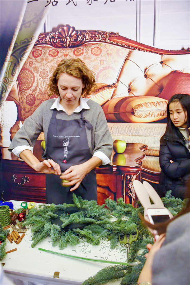福溢家居一直以來所追求的,是帶給消費者最純正的外國風尚, 11月26號,福溢家居法式花藝活動北京站正式開始,我們邀請了法國著名花藝師Carole Delavelle親臨現(xiàn)場教大家插花的技巧,分享知識。