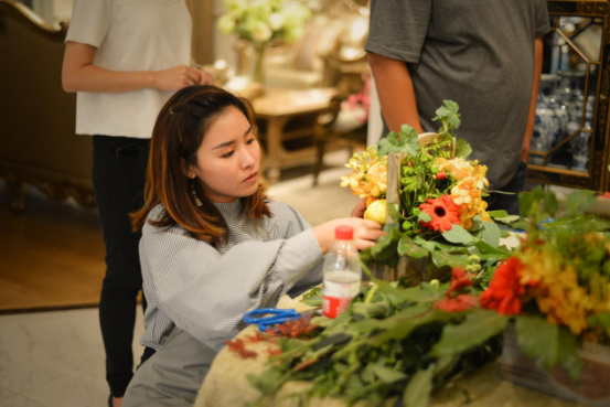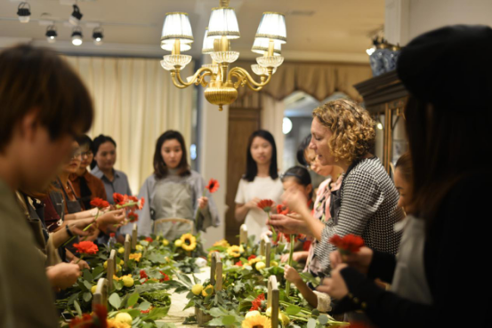 活動參與者在花藝師Carole Delavelle的指導(dǎo)下認(rèn)真學(xué)習(xí),在輕松愜意的插花過程中尋找生活的靈感,放下平日的繁忙,感受生命的覺醒與回歸。