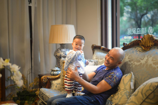 爸爸和孩子帶著融情的蜜意看著沉浸在幸福花海當(dāng)中的媽媽,在不經(jīng)意間笑靨如花。