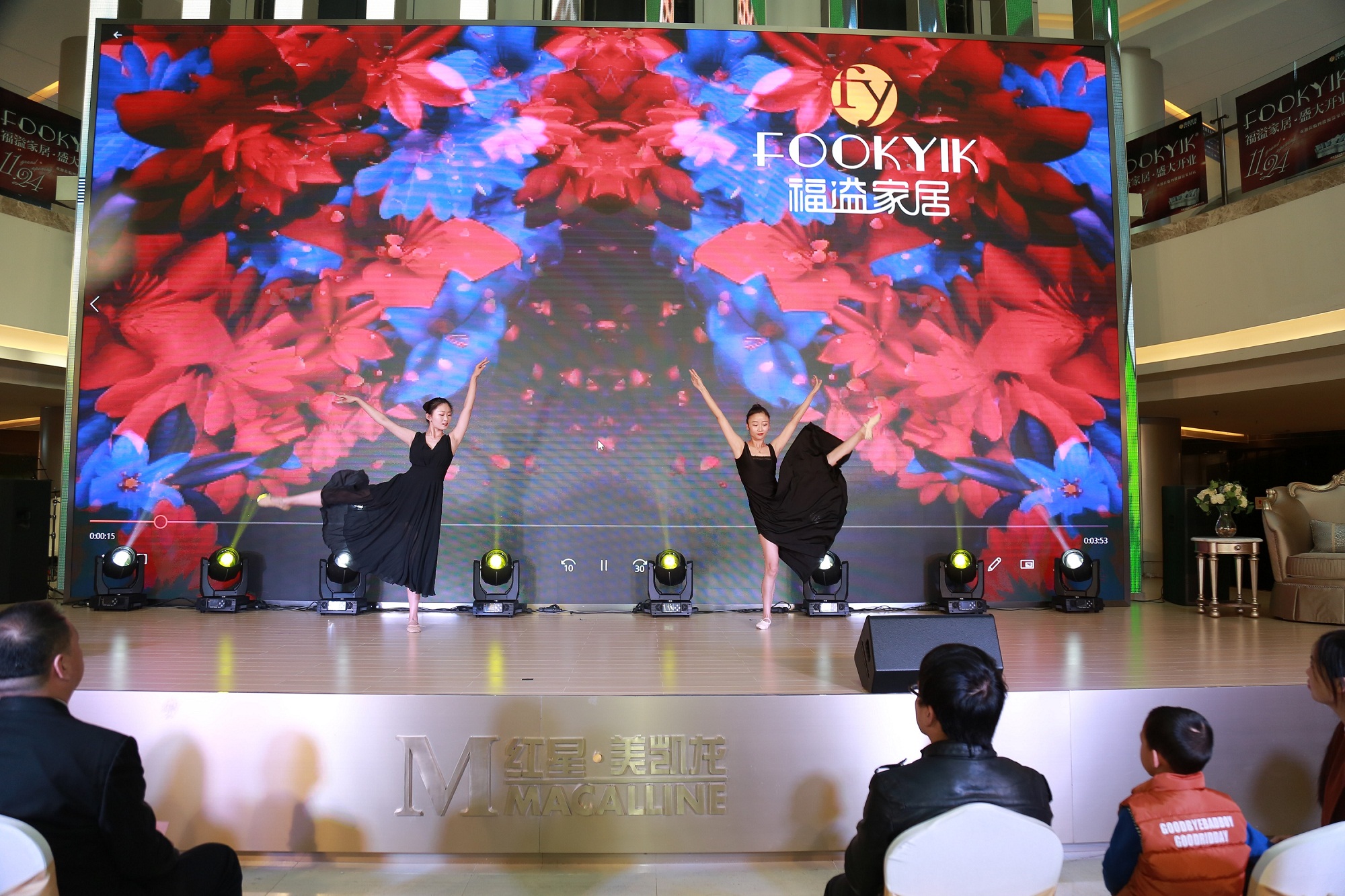 11月24日14:30上海真北店開業(yè)儀式正式開始,精彩優(yōu)美的開場(chǎng)舞《花語傳說》人與視頻完美融合,奏響了活動(dòng)的序曲,叩開生活新主張,開啟原創(chuàng)歐美家具的奢雅家居格調(diào)。