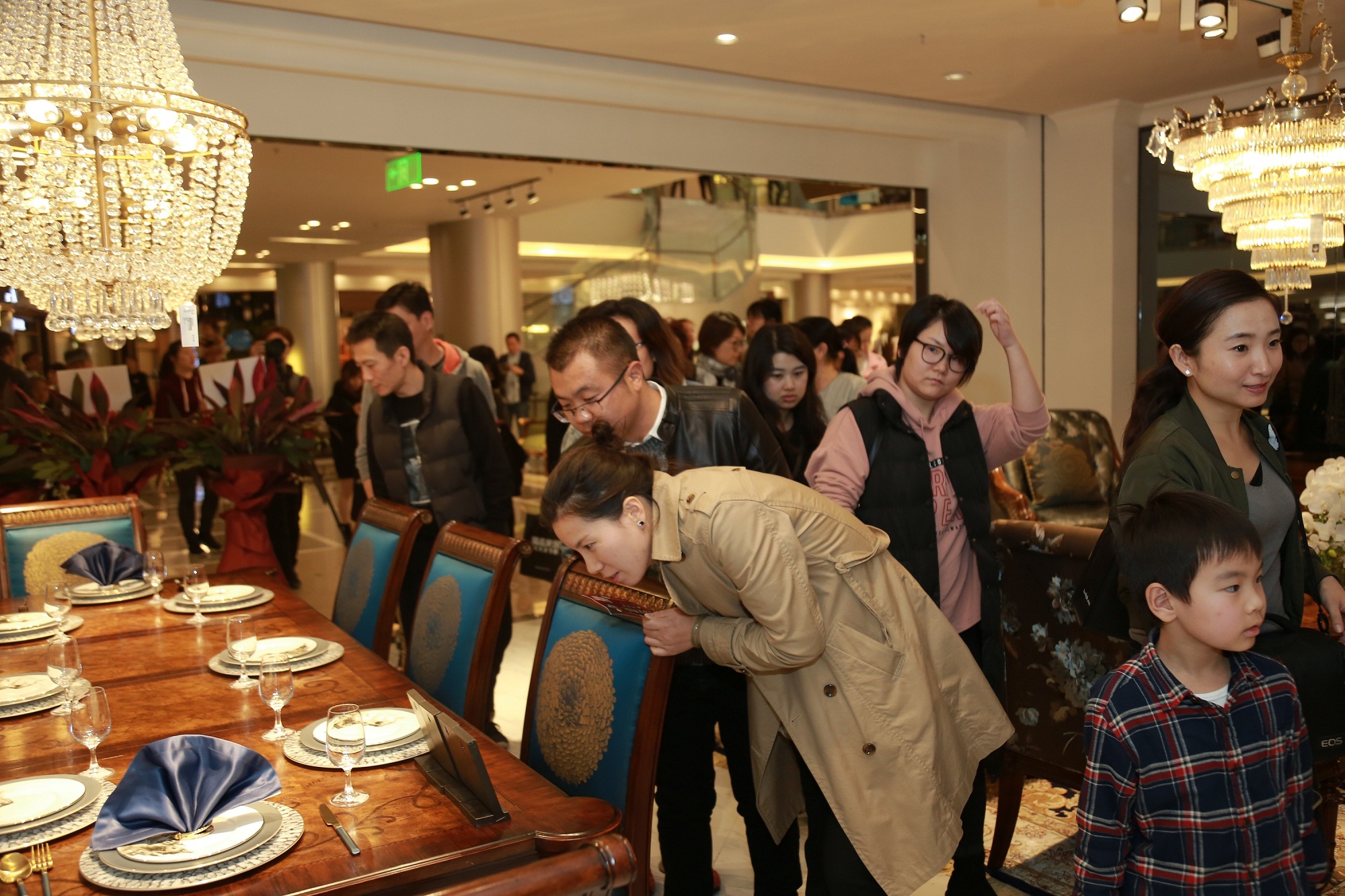 上海真北店由福溢家居精心規(guī)劃打造,分空間展示英式、法式、意大利式、時(shí)尚四種不同的家居場(chǎng)景?;顒?dòng)結(jié)束后人們隨著醒獅的步伐來到門店內(nèi),門庭若市,人們對(duì)精工打造的產(chǎn)品都表現(xiàn)出濃烈的興趣。沉浸于家的藝術(shù)殿堂之中。